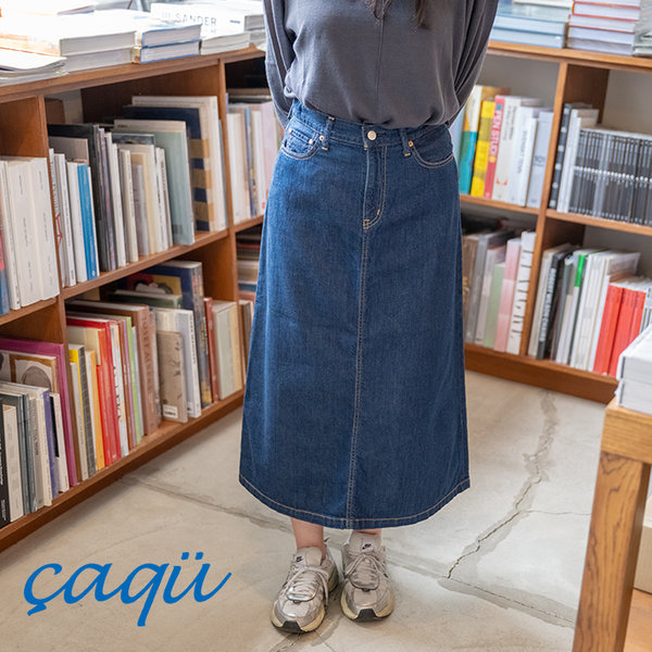 寒い時期はブーツ、春先はパンプスなど合わせやすい万能デニムスカートです。