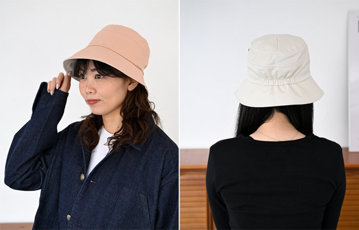 強い日差しを遮りながら、花粉や雨にも対応できるコカゲル+のバックギャザーハット。