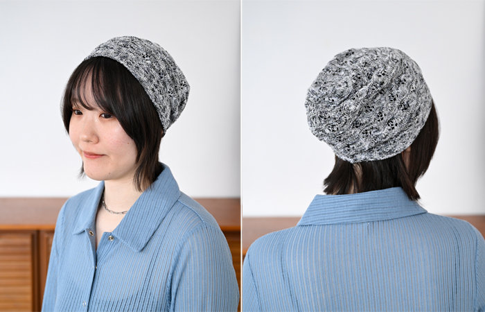 丁寧に編み立てられた日本製の透かし編みニット帽。バルーンのようにふんわり丸みのあるシルエットで、やさしく包み込むような被り心地です。ミックスカラーの糸が表情を添え、シンプルながら存在感のある仕上がり。手洗い可能でお手入れも簡単。リブ部分は程よい硬さがあり、安定して被れます。