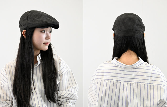 インディゴ染めのストライプ生地に洗いをかけ、風合いを引き出したNEWSBOYキャスケット。