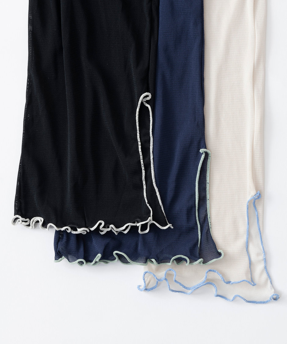 うねり感のある裾や少し幅広でルーズに履けるシルエットが、どんな丈のスカートに合わせてもバランスよくコーディネートできます。