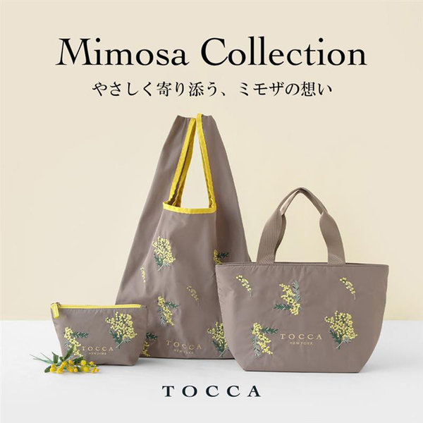 ベージュにミモザのお花の刺繍が春らしさを感じさせます。