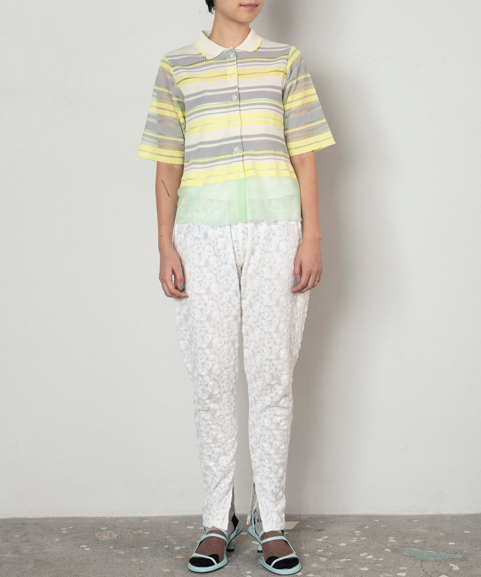裾の幅広いシアー素材が、上下の切り替えを曖昧にしてくれるのでどんなボトムスでもバランスよく着こなせるように。