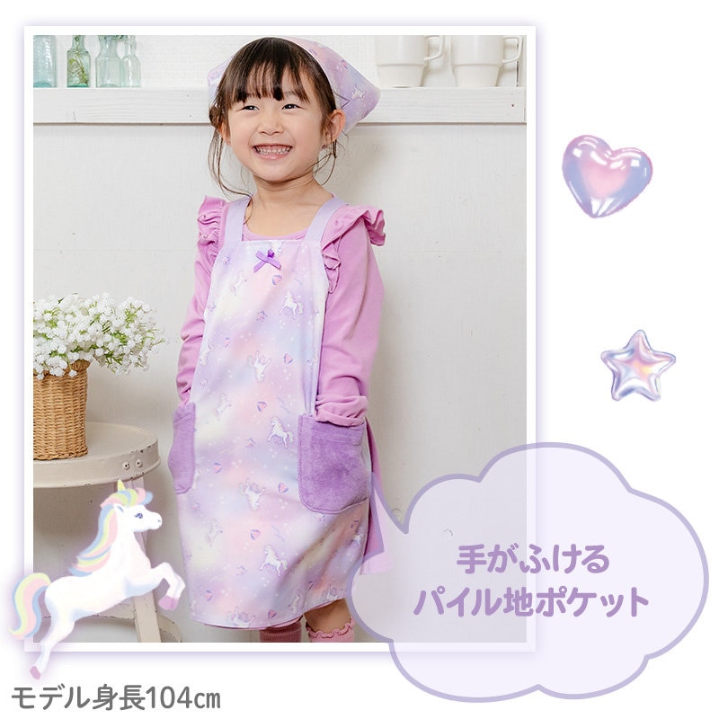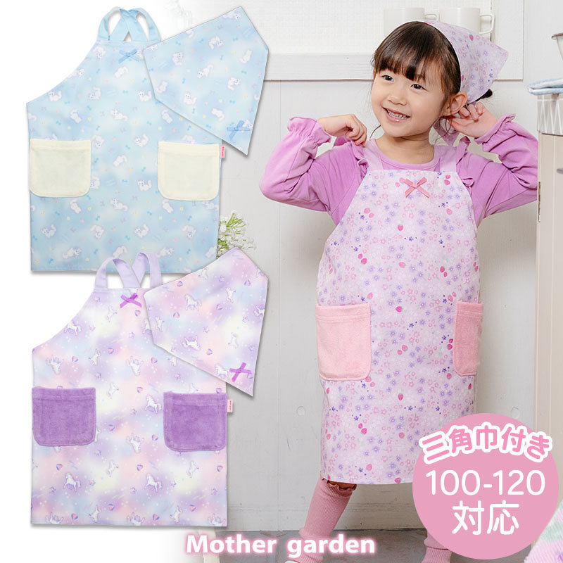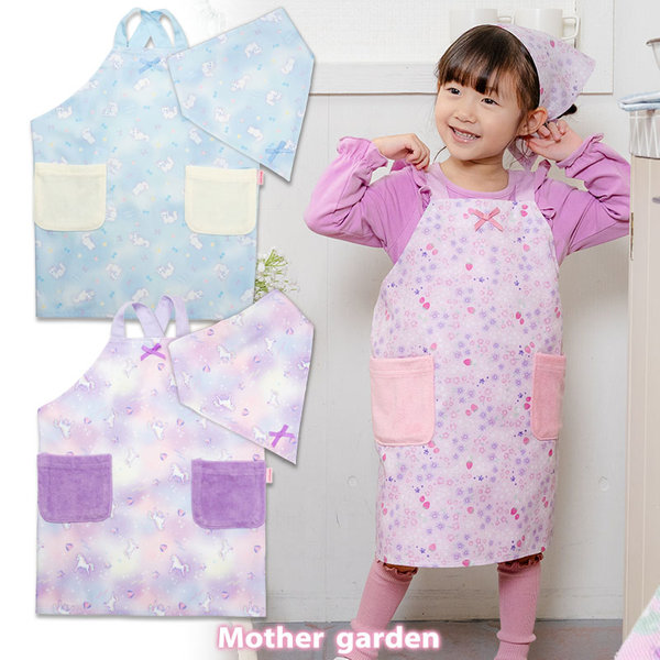 マザーガーデン ユニコーン バッククロスエプロン 三角巾付き 100~120cm 《ぷっくり柄》