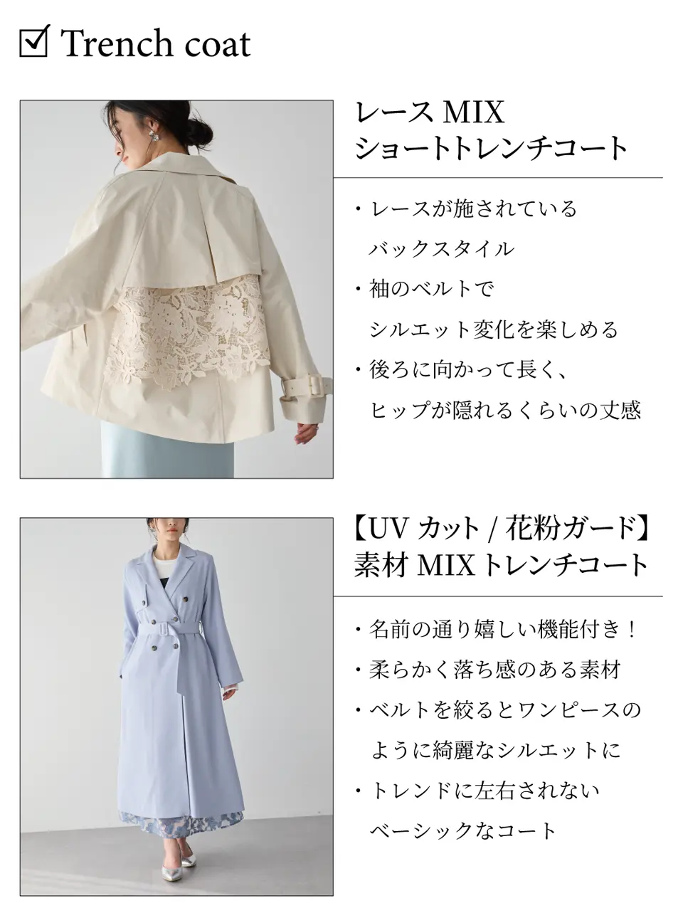 レースMIXショートトレンチコート