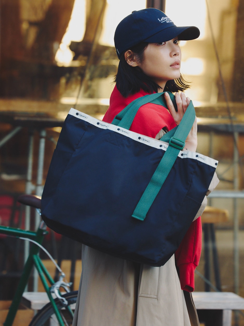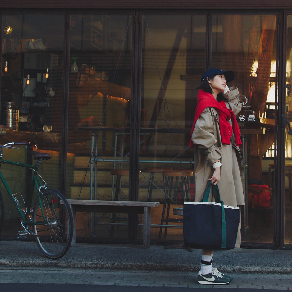 オンとオフとを自在にスイッチするための 決め手は大容量なトートバッグ。