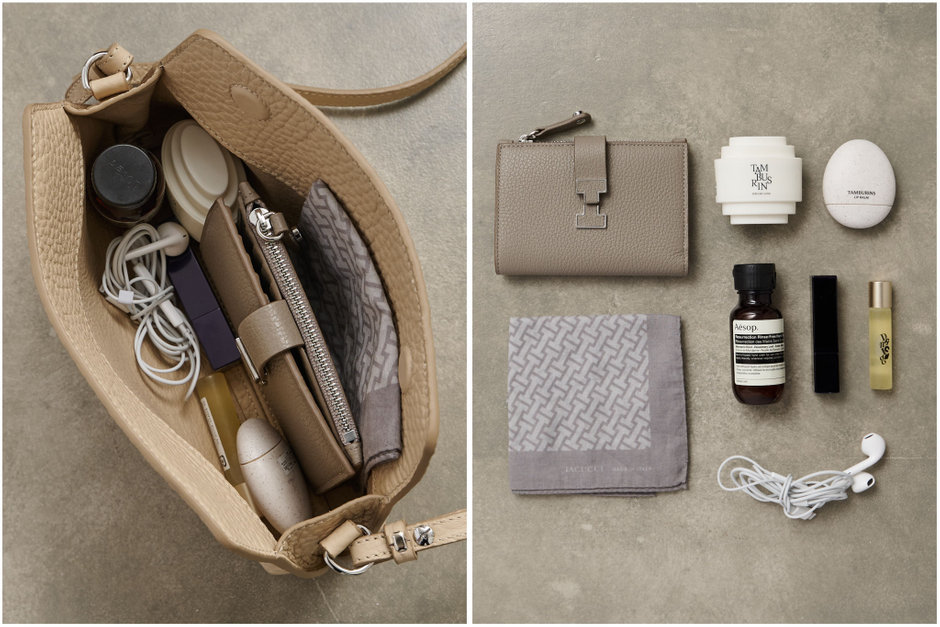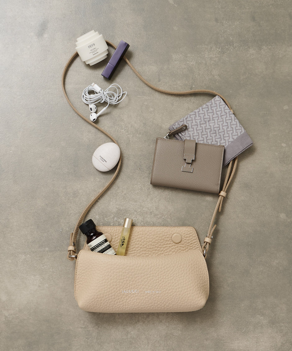 貴重品もすっきりと収まるほど。ハンドクリームやイヤホンまで、小物アイテムも収納可能なサイズ感です。