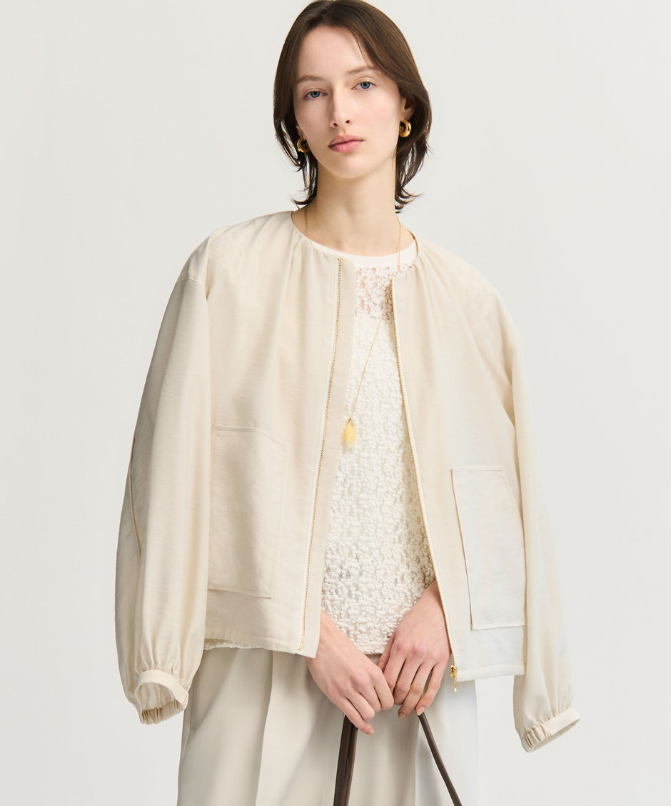 |すっきりとしたデザインで着回し力抜群のシアーブルゾン