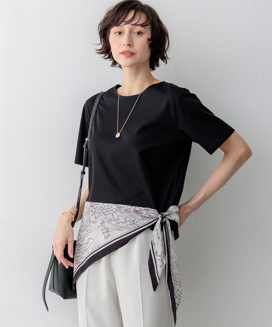 スカーフコンビジャージー ウエストデザイン カットソー ¥16,940(税込)>Lサイズ >Sサイズ