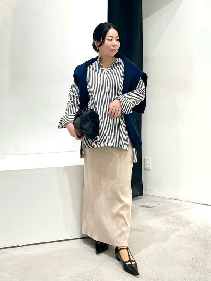 スカート×シャツのオフィスコーデに