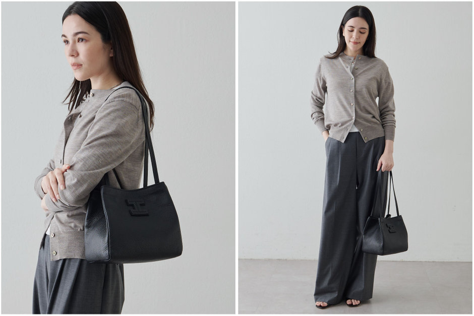 △メリハリをもたらし、ハンサムにも上品な印象にも仕上げてくれるブラックカラー。スタイリングに合わせる幅も広く、カラーバランスで迷いいにくいのも、このベーシックカラーを選ぶポイント。バッグ自体のデザイン性があるからこそ、シンプルにベーシックカラーを選ぶのもおすすめです。