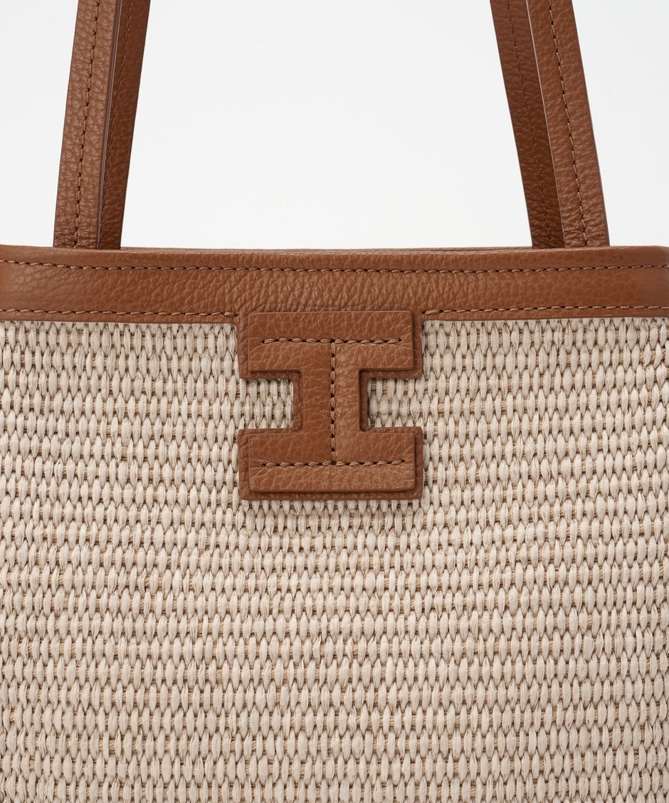 鎖状に編み込まれたストロー調素材が印象的なシーズン限定素材。
