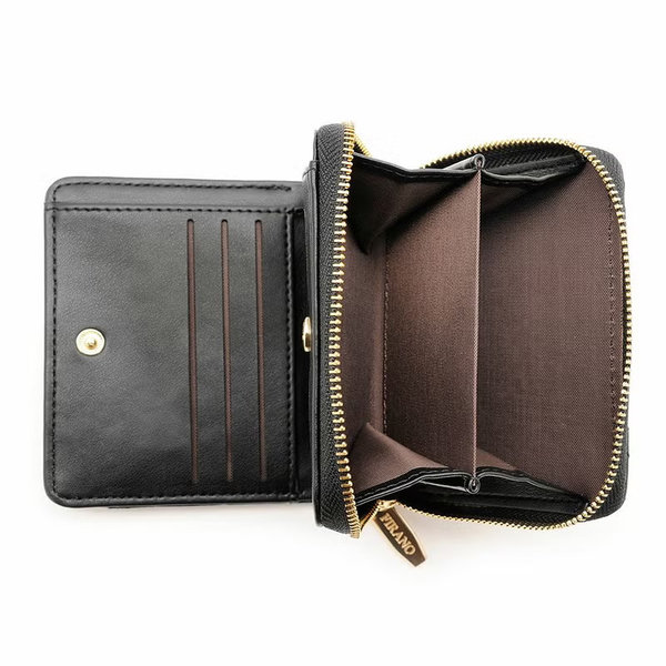 お札入れ1個と、ファスナー開閉のコインスペースを備え、見た目以上に使いやすい設計です。