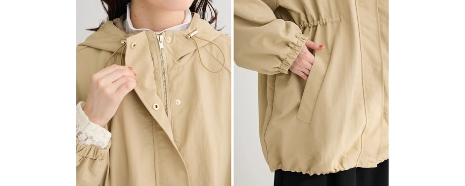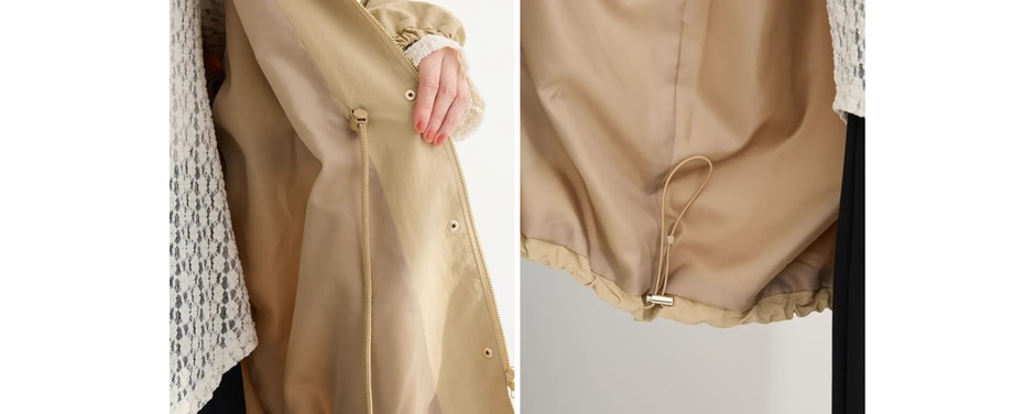 ・裾やウエストにドロストコードがあり、