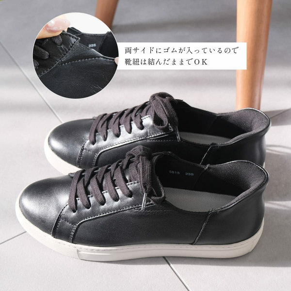 両サイドにゴムを配しているため、靴紐は結んだままでOKです。