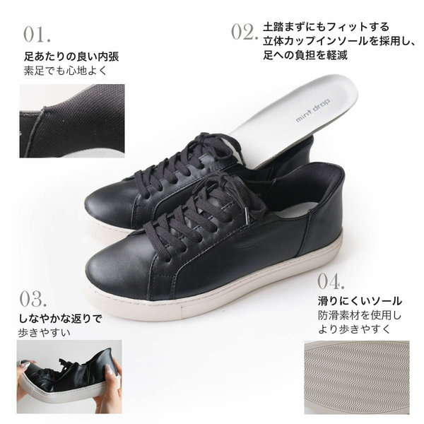 さらに、タン(ベロ)が中に折れ込まない設計で、ストレスなく履けます。