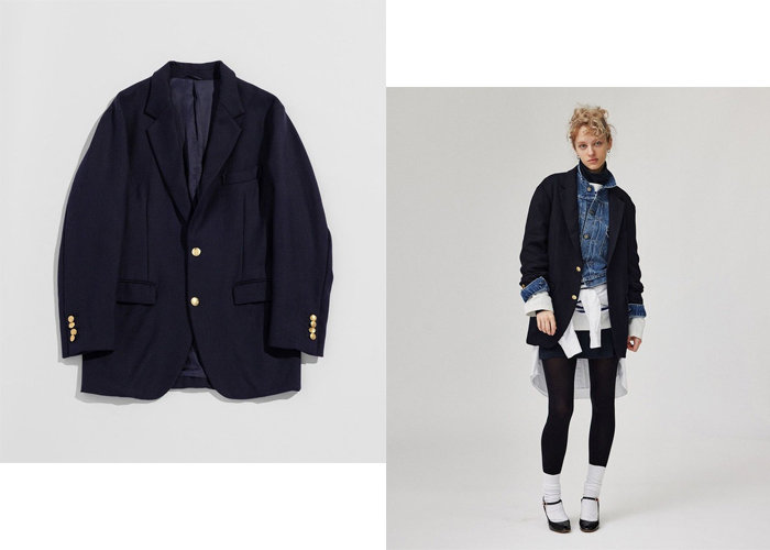 ・端正なネイビーに金ボタンが映える、クラシックなブレザー。