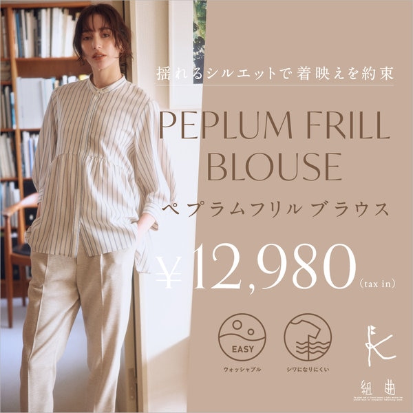 揺れるシルエットで着映えを約束 ペプラムフリルブラウス
