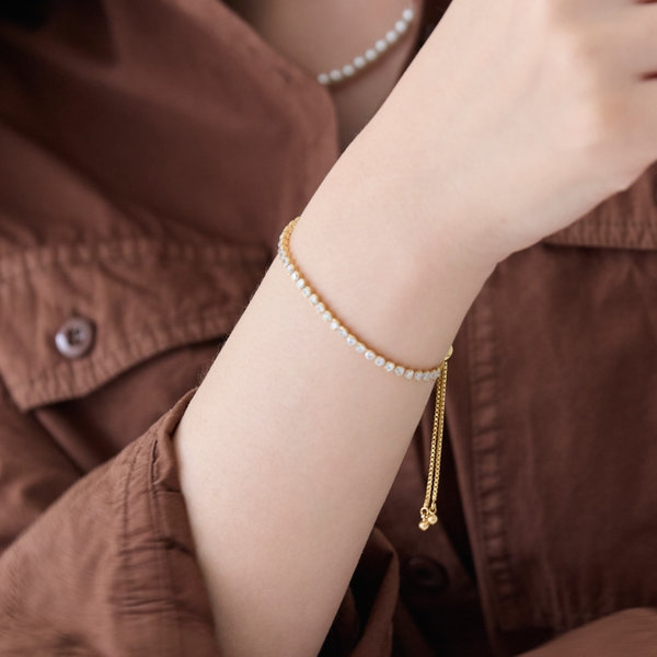 <2位>ラインストーンスライドテニスブレスレット ゴールド