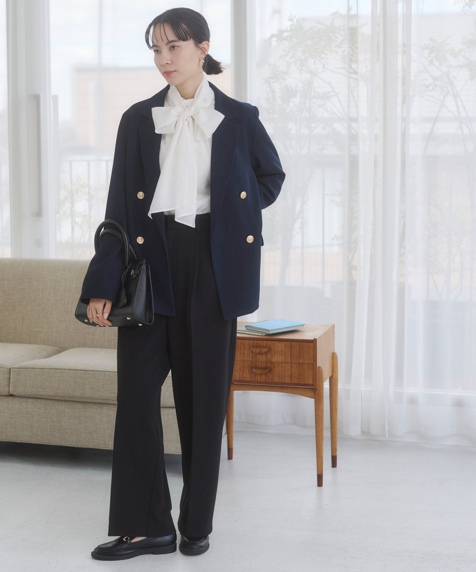 ブラウスやスラックスと合わせれば、