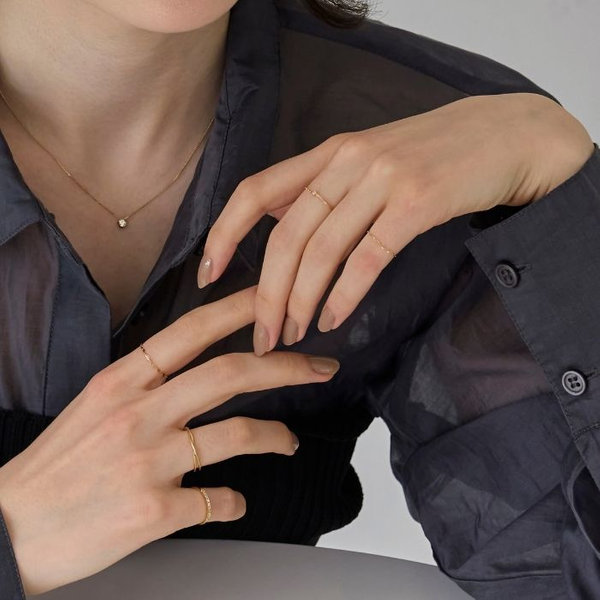16華奢で繊細な輝きが魅力のK10素材は、レイヤードスタイルにぴったり。
