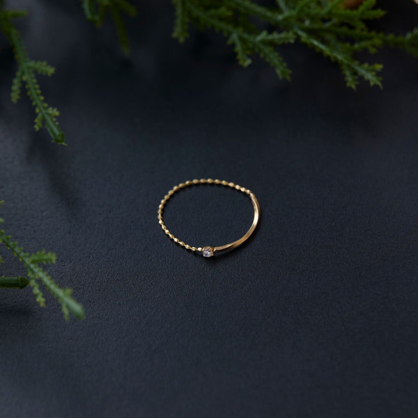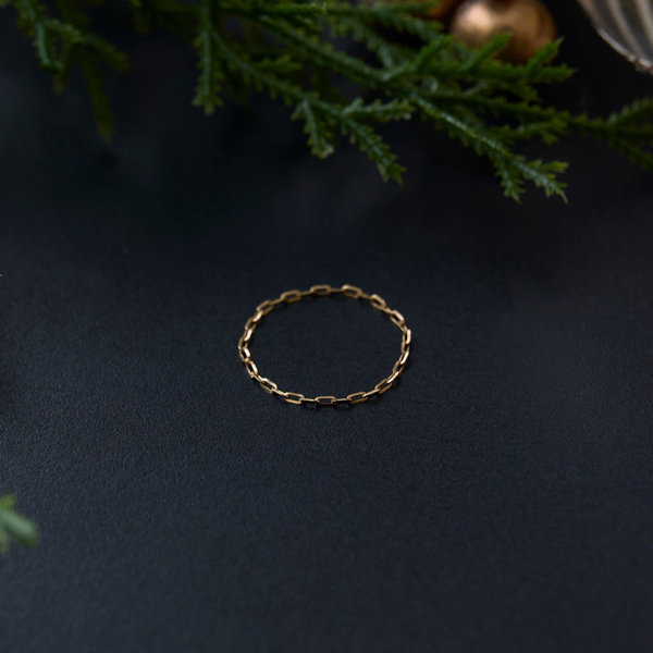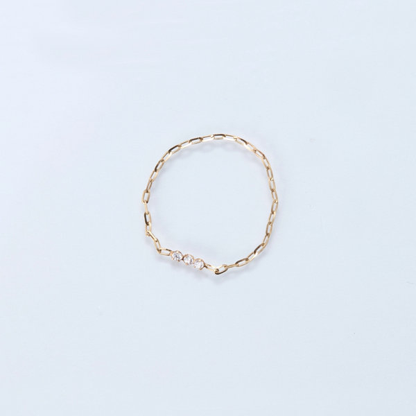 【K10】タイニービジューチェーンリング ゴールド