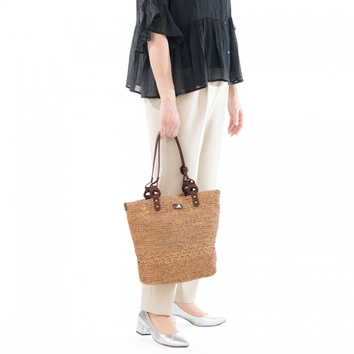 使い込むほどに自然なツヤが生まれ、風合いが少しずつ深まっていくラフィア。