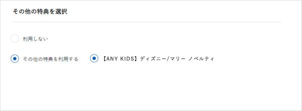 「その他特典を利用する」⇒「【ANY KIDS】ディズニー/マリー ノベルティ」を選択してください。
