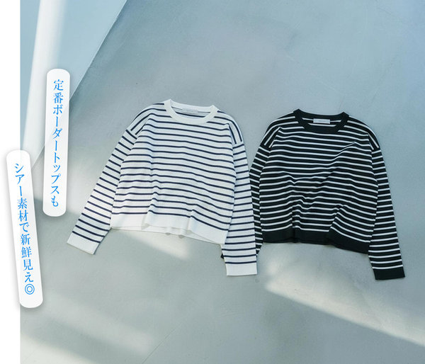 カジュアルな印象のボーダーも、シアー素材で女性らしい印象に。