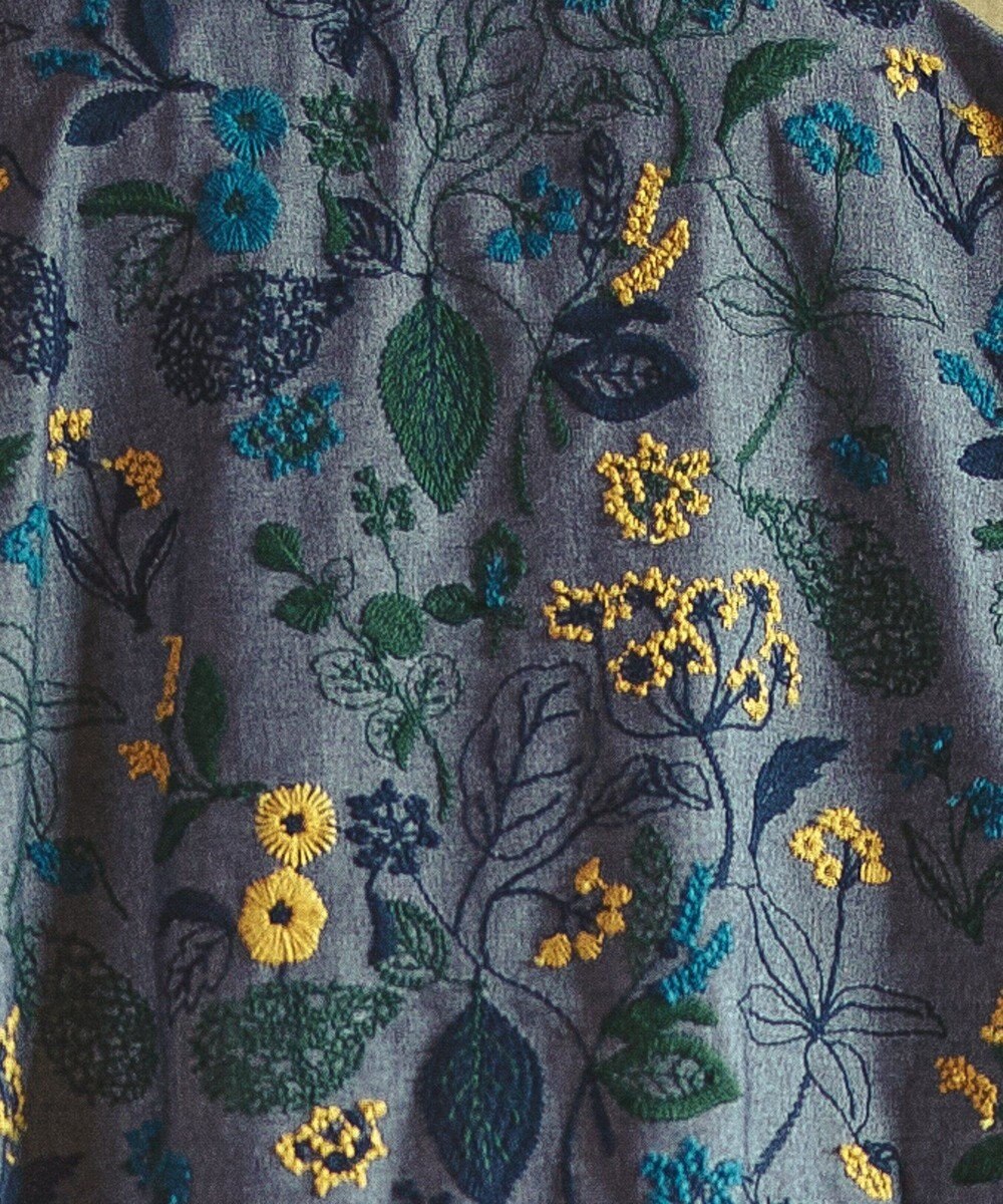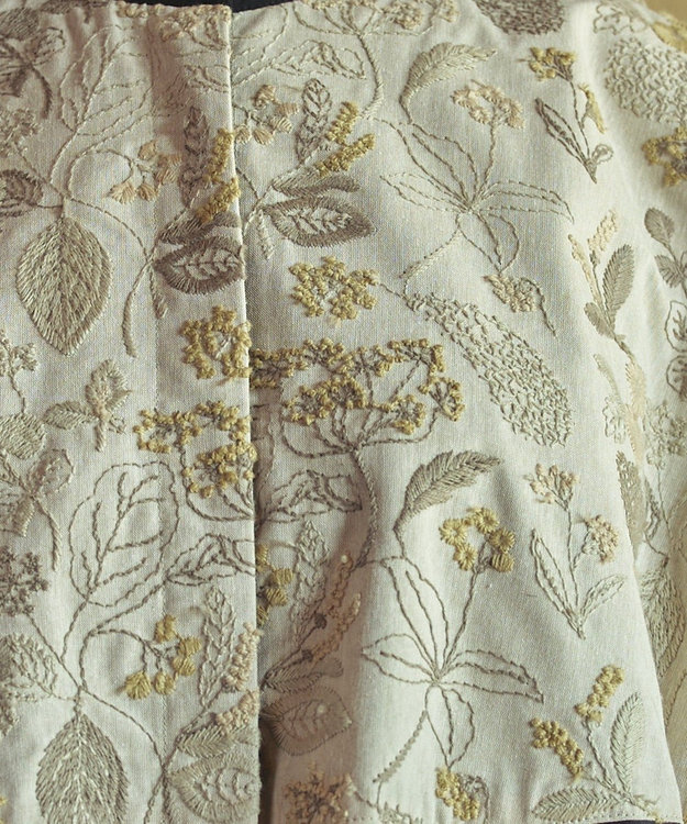 手刺繍かと思わせる植物のモチーフが繊細に広がる刺繍は、まるで筆記帳に綴られたスケッチのように軽やかで華やかです。