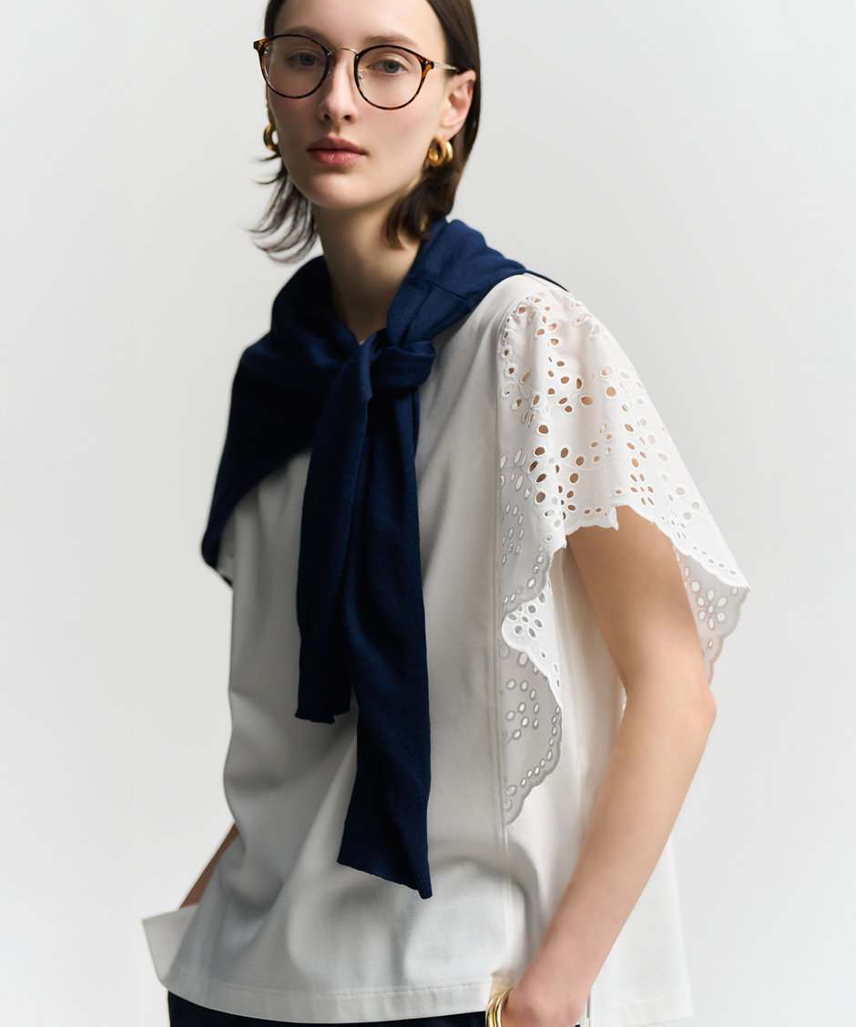 カットワークエンブロイダリー デザインスリーブ トップス ¥17,930(税込)>Lサイズ >Sサイズ