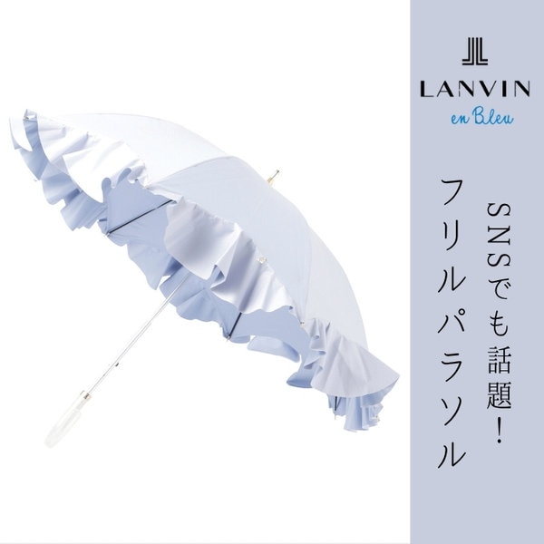 【雑誌掲載 美人百花6月号】ランバン オン ブルー 晴雨兼用日傘 長傘 フレアフリル&チャーム 遮光 遮熱 UV