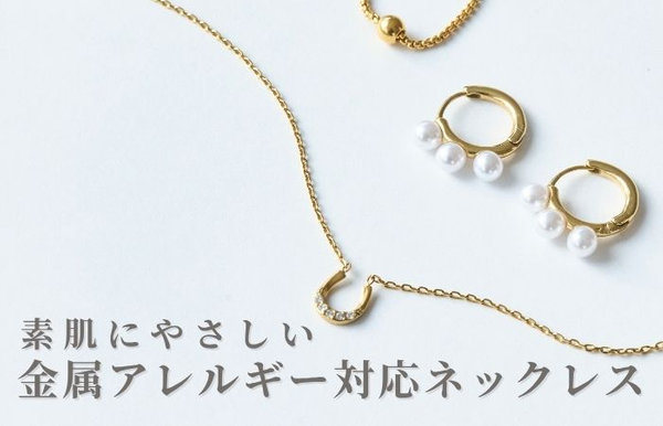 〈金属アレルギー対応〉メタリックパールホースシューネックレス ゴールド ステンレス/馬蹄/蹄鉄/ラッキーモチーフ/ギフト/プレゼント/大ぶり