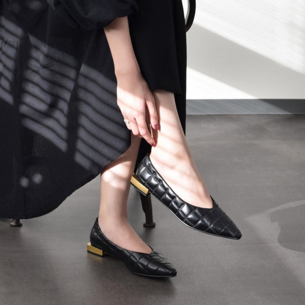 【ANGEL ALARCON】ポインテッドトウキルティングパンプス