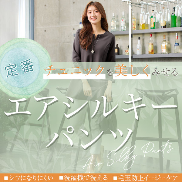 広がるチュニックのシルエットを整えて、きちんと見せる