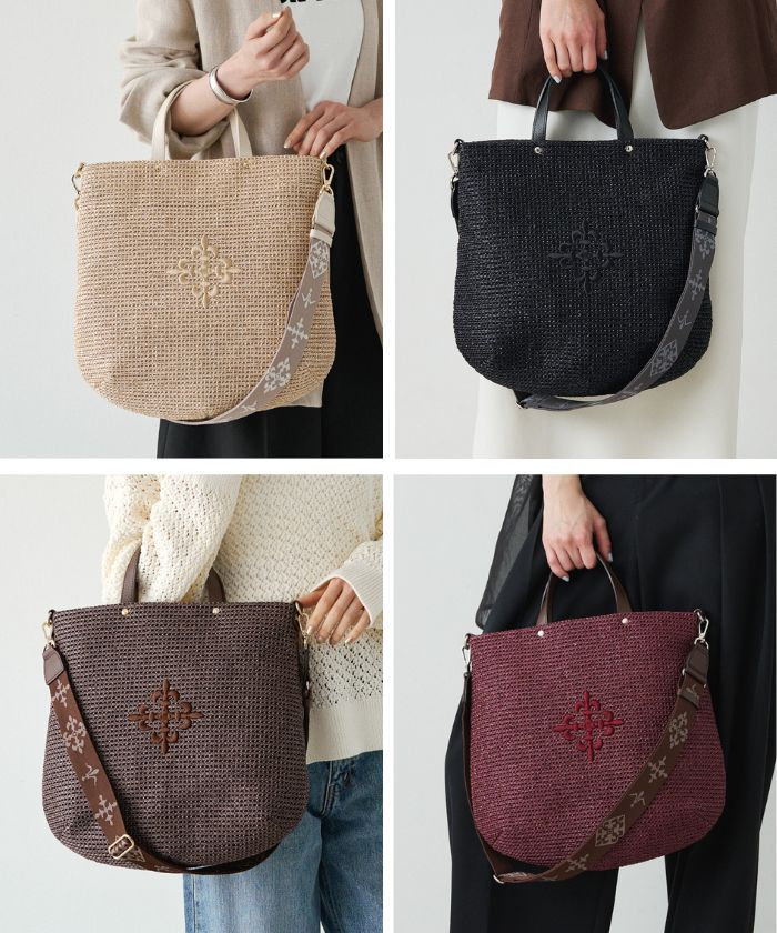 ナイロンラフィア、エンボスレザーなど