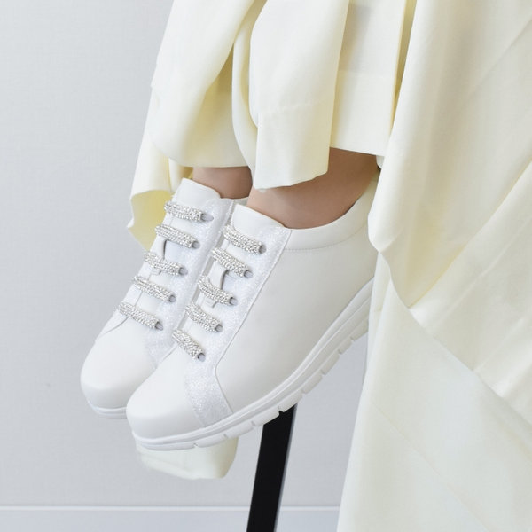 ラメストーンのシューレースが、足元に上品なきらめきをプラス。