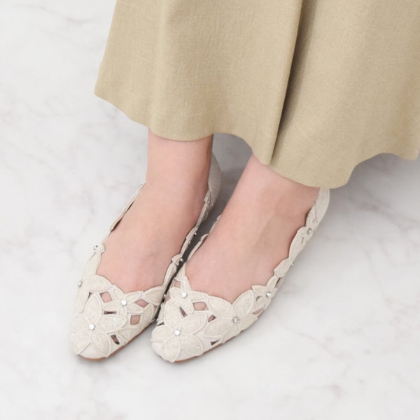 お花のカットワークが目を引く、華やかな一足。