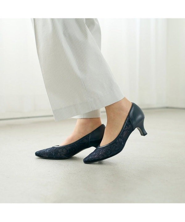 Vカットレースパンプス