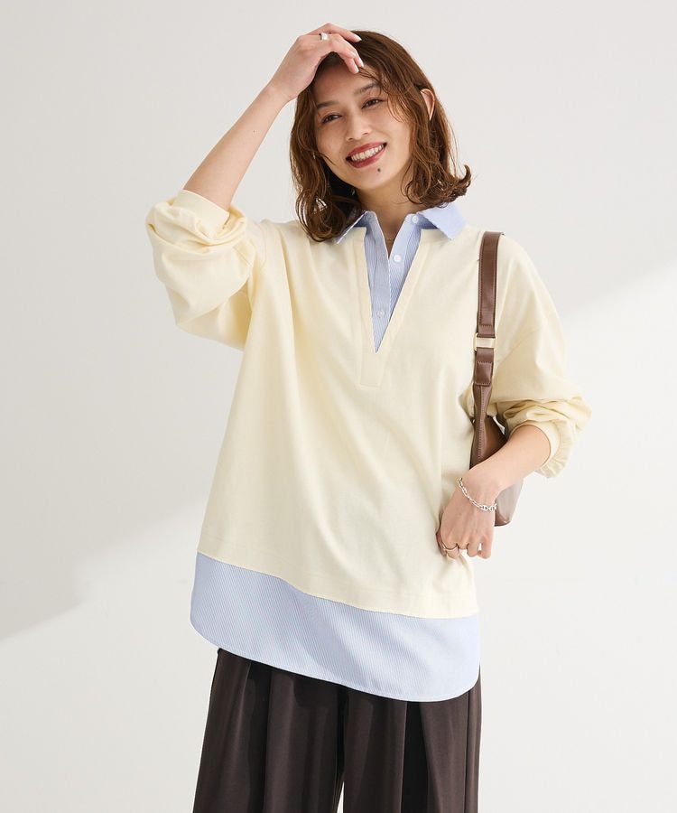 カットソーとシャツ素材を組み合わせた