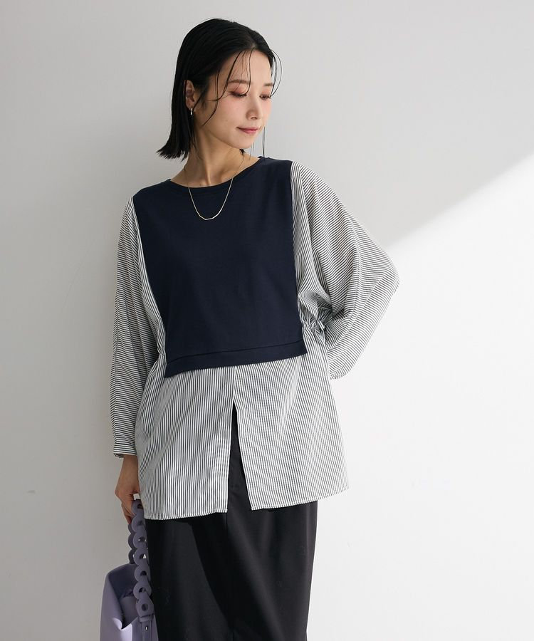 03.「7分袖サイドシャーリングドッキングプルオーバー」