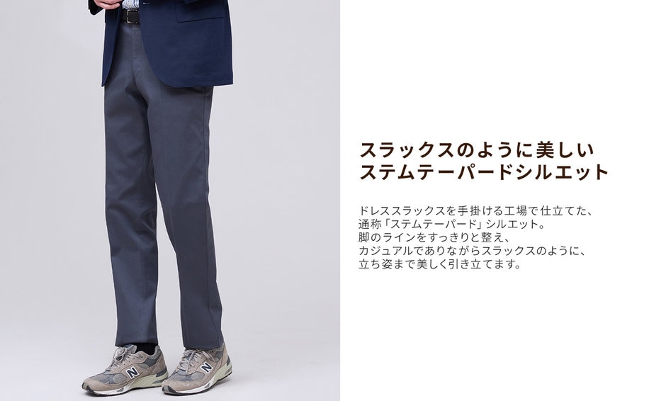 端正で快適なJ.PRESSの定番シルエット“ステムテーパードパンツ”