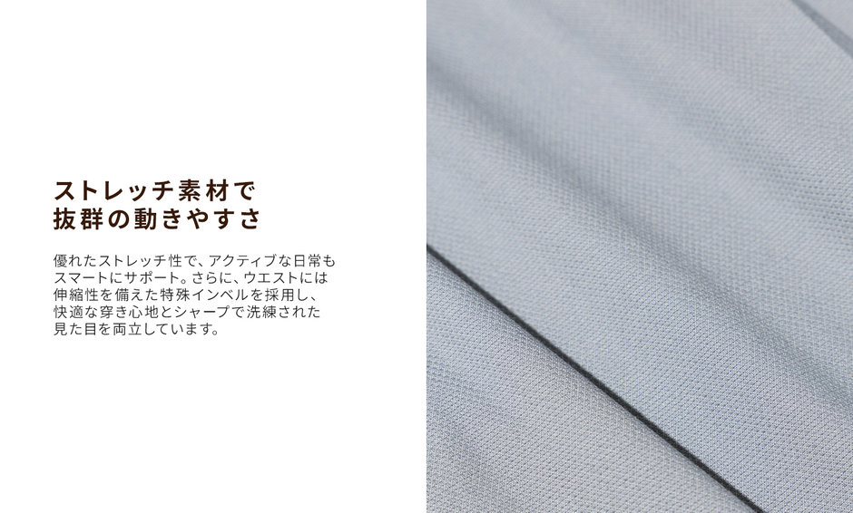 端正で快適【ストレッチ / オンオフ兼用】トリコチン ステムテーパード パンツ_26年モデル