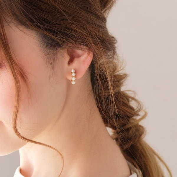 縦に並べたパールビジューが艶めく、セレモニーやオケージョンに人気のイヤリングがランクイン。