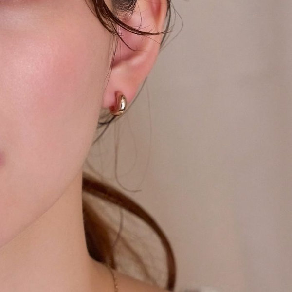 <4位>【金属アレルギー対応】ぷっくりフープセラミックピアス シャンパンゴールド