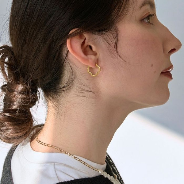 <5位>【金属アレルギー対応】フラワーワンタッチフープピアス ゴールド