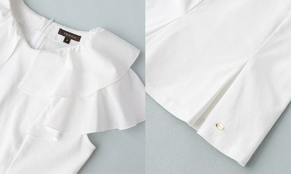 フロントには細やかなピンタックを施し、縦のラインを強調。スタイルアップも期待できます◎