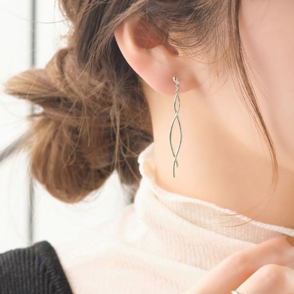 シルバーのウェーブラインが軽やかに揺れる、ロングイヤリング。