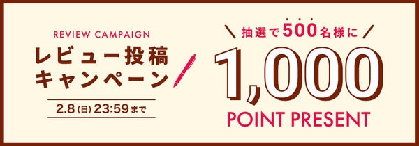 キャンペーン期間中に商品レビューをご投稿いただいたお客様の中から抽選で500名様に1,000円分ポイントをプレゼント