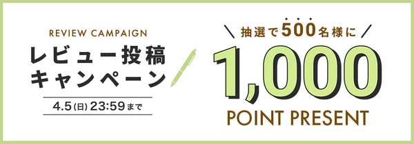 キャンペーン期間中に商品レビューをご投稿いただいたお客様の中から抽選で500名様に1,000円分ポイントをプレゼント